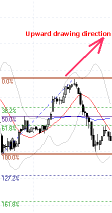 First, please note that the Fibonacci tool works differently depending on the direction of drawing and the "show extensions" flag. See the pictures below.