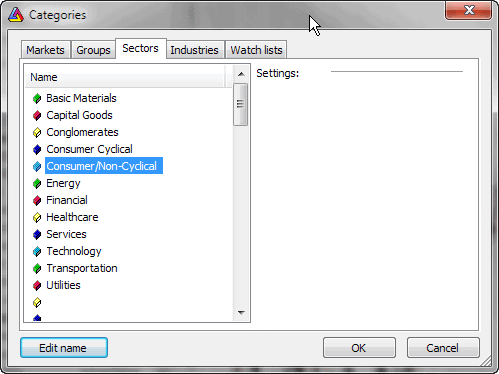 As described above, symbol and industry names and relationships can be easily set up quickly using "broker.sectors" and "broker.industries" files. It will save some work needed otherwise to enter this information in the Symbol->Categories window.