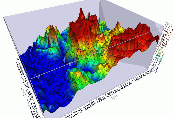 AmiBroker's 3D chart viewer offers total viewing capabilities with full graph rotation and animation. Now you can view your system results from every conceivable perspective. You can control the position and other parameters of the chart using the mouse, toolbar, and keyboard shortcuts, whatever you find easier. Below, you will find the list.