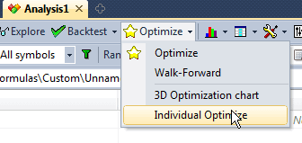 Starting from AmiBroker 5.70, in addition to multiple-symbol multithreading, you can perform multi-threaded single-symbol optimization. To access this functionality, click on the drop-down arrow next to the "Optimize" button in the New Analysis window and select "Individual Optimize".