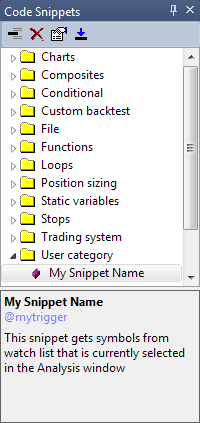 As you may have noticed, user-defined snippets are marked with a red-colored box in the Code Snippets list. Only user-defined snippets can be overwritten and/or deleted.