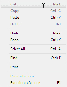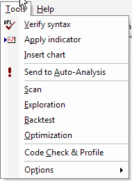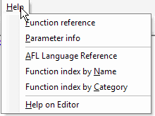 The AFL editor features a separate menu consisting of the following choices: