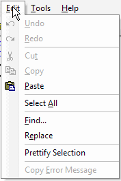 AFL Editor menu