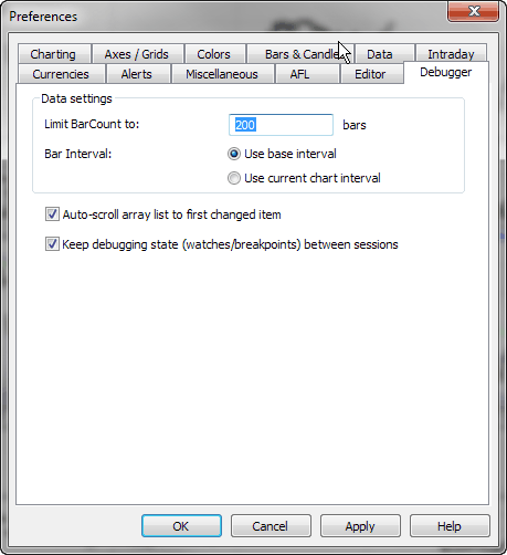 the formula is reopened. Note that the .dbg file is automatically deleted by AmiBroker